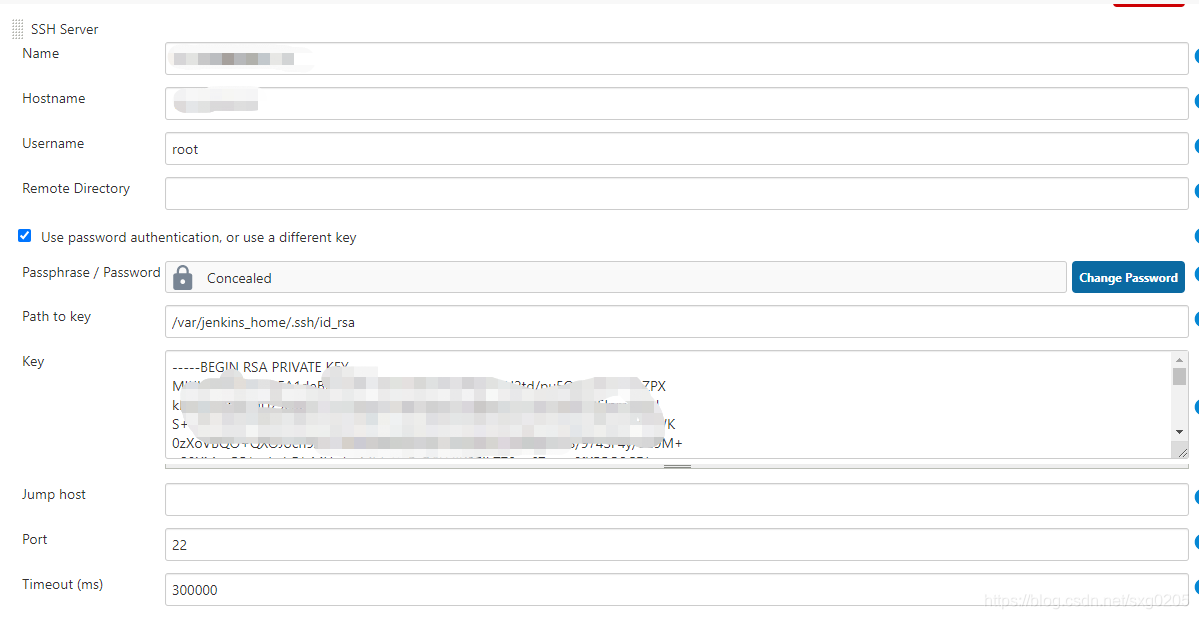 已在Jenkins - 配置 - Publish over SSH 中配置 服务器B的连接信息如下: