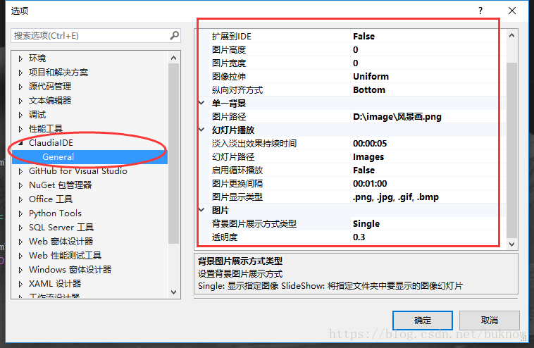 同时,你可以自己更改图片,更改的话点击菜单栏的工具→选项,打开对话框后找到并点击ClaudiaIDE,在对话框右侧就会出现一些选项,其中“图片路径”一项就可以修改成你自己的照片的路径,其他的根据你自己的喜好更改就好了。图片最好是png格式的啊,这样看着会比较舒服。